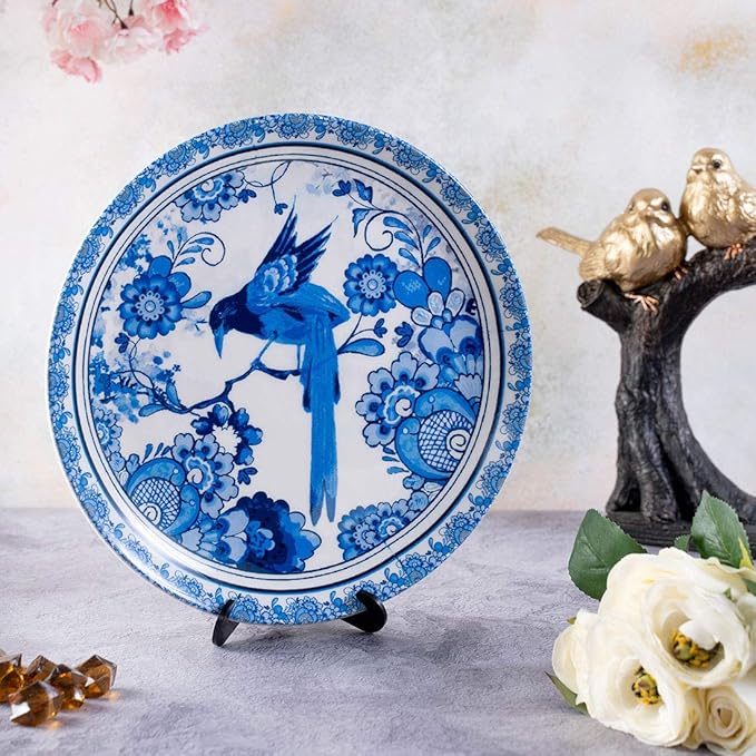KOLOROBIA Decorative Wall Plate|Stand & Metal Hook| Blue Pottery Bird |Hanging Wall Plate